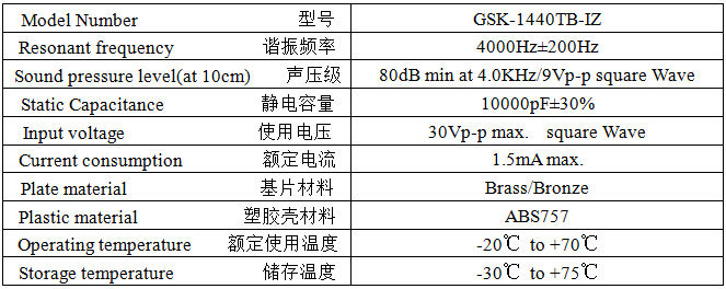 Product Name: Passive Piezoceramic Buzzer 14mm 4.0KHz Pin-inserted