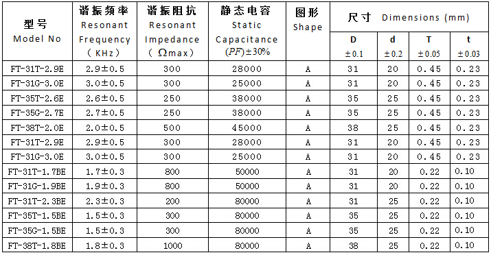 產(chǎn)品名稱: 他激式蜂鳴片 中等尺寸