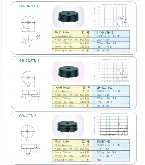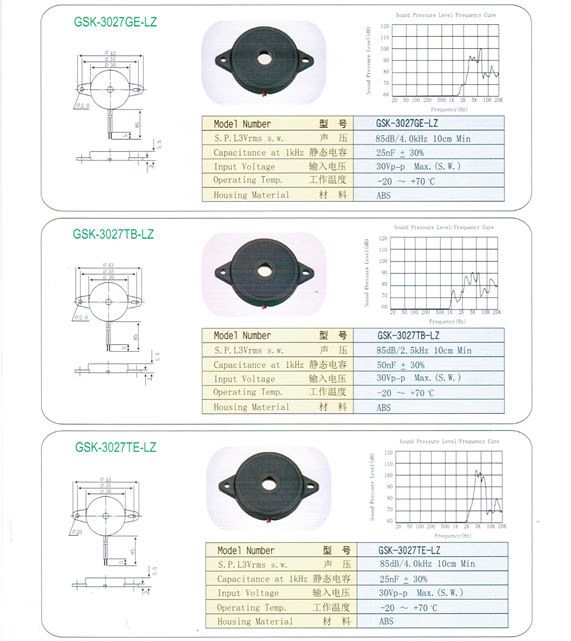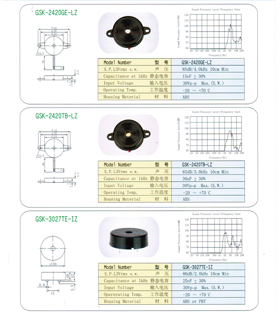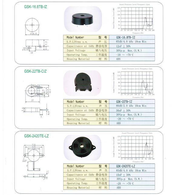 壓電式蜂鳴器是一種電聲轉(zhuǎn)換器件,由蜂鳴片、樹脂外殼、后蓋和插針或引線構(gòu)成,其中蜂鳴片是將壓電材料粘貼在金屬片上,當(dāng)壓電材料和金屬片兩端施加上一個電壓后,因為壓電效應(yīng),蜂鳴片就會產(chǎn)生機械變形而發(fā)出聲響。壓電材料有多種,用在蜂鳴片上的壓電材料通常是高壓極化后的壓電陶瓷片。 壓電式蜂鳴器具有體積小、靈敏度高、耗電省、可靠性好的特點和良好的頻率特性,廣泛應(yīng)用于家用電器、電子鐘表、電子玩具、儀器儀表、報警以及各種傳感和自控系統(tǒng)中。