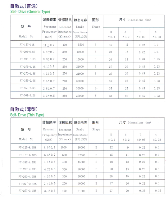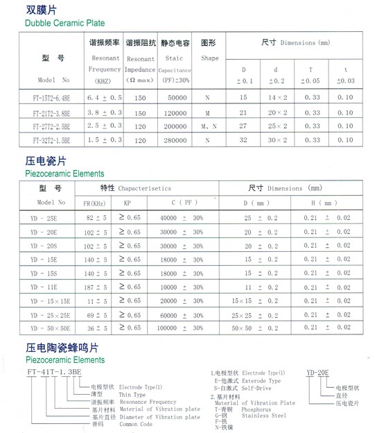 壓電陶瓷蜂鳴片是壓電陶瓷發(fā)聲元件,形狀為片狀,適用于小型化、薄型化的電子、電器產(chǎn)品,如:電子種表、家用電器、電子玩具、儀器儀表、電子體溫計、遙控電器等各種電子產(chǎn)品的發(fā)聲、警示之訊響用途,也可作為聲控電子產(chǎn)品的聲傳感器。 壓電陶瓷蜂鳴片 o按厚薄頻率不同分為:普通型、薄型、超薄型、特異型; o按外形不同可分為:圓形、半月形、橢圓形、偏心、方形、環(huán)形等各種特異形產(chǎn)品。 本公司可以根據(jù)客戶的需求定制產(chǎn)品,能滿足450Hz-20KHz不同頻率的發(fā)聲要求。 歡迎您的選購!我們將竭誠為您服務(wù)!
