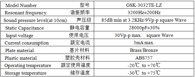 Product Name: Passive Piezoceramic Buzzer 30mm 3.2KHz Wire-lead