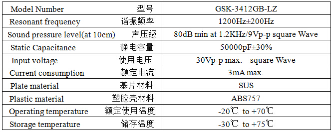 Product Name: Passive Piezoceramic Buzzer 34mm 1.2KHz Wire-lead