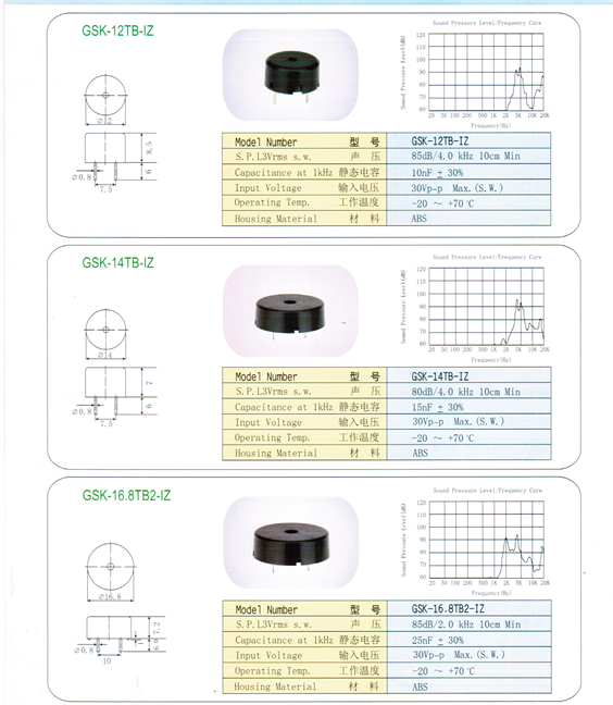 壓電式蜂鳴器是一種電聲轉(zhuǎn)換器件,由蜂鳴片、樹脂外殼、后蓋和插針或引線構(gòu)成,其中蜂鳴片是將壓電材料粘貼在金屬片上,當(dāng)壓電材料和金屬片兩端施加上一個電壓后,因為壓電效應(yīng),蜂鳴片就會產(chǎn)生機械變形而發(fā)出聲響。壓電材料有多種,用在蜂鳴片上的壓電材料通常是高壓極化后的壓電陶瓷片。 壓電式蜂鳴器具有體積小、靈敏度高、耗電省、可靠性好的特點和良好的頻率特性,廣泛應(yīng)用于家用電器、電子鐘表、電子玩具、儀器儀表、報警以及各種傳感和自控系統(tǒng)中。